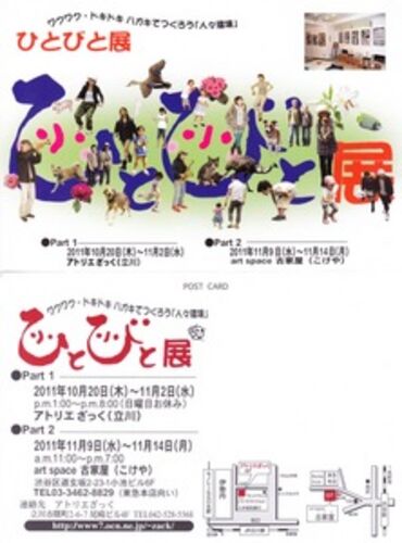 立川伊勢丹向かいのアトリエざっくで「ひとびと展」が開かれてます。はがきサイズの大きさ限定です。子供たちの絵から大人の絵まで多種多様です。以前は玉川上水駅展示スペースでの展示でしたが、節電のため使用できなくなり急遽アトリエが会場になったそう…