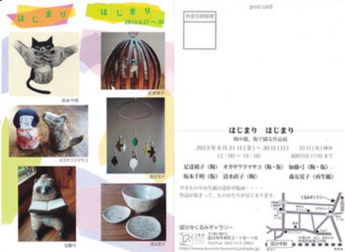 足達禎子(陶) オガサワラマサコ(陶・版) 加藤弓(陶・版) 坂本千明(版) 清水直子(陶) 森友見子(再生紙) 陶や紙による楽しい展示が始まりました。6人の作家によるそれぞれの物語の作品展示です。いつか聞いた昔昔のおとぎ話、今の世界のどこかで…