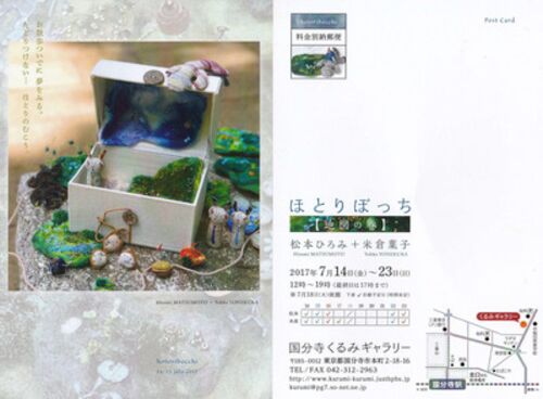 「ほとりぼっち」というタイトルで3回目になるお二人の展示です。 今回は地図の巻。ギャラリーにはりめぐらされた“ひも“は様々な地形を描き、町や国の堺、陸や海の際、それぞれの「ほとりぼっち」に布やフェルトで作られた不思議な生きもの、植物がたくさん…