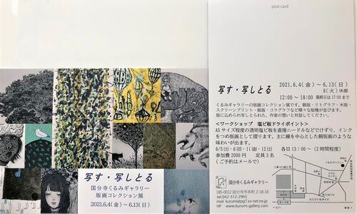 国分寺くるみギャラリーの版画コレクション展です。銅板・リトグラフ・木版・スクリーンプリント・紙版・コラグラフなど多岐にわたる版種が並びます。その数50点余りです。 版画はまず基になる版を作ります。その工程に作者の想いが入ります。そしてその版…