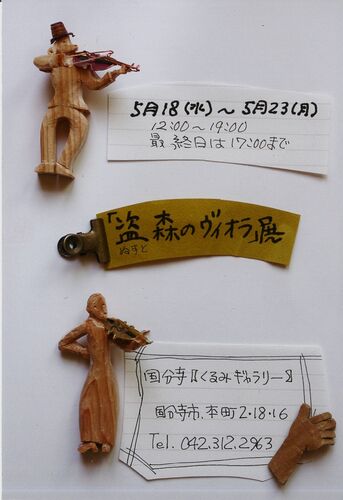 今年も斎藤俊美さんの個展が始まりました。ダンボールの額縁の中に楽器(今年はバイオリンとビオラ)を持った様々な演奏者たちがいます。素敵な音楽が聞こえてくるようです。 また麻紐で作られたきりぎりすたちも魅力的です。ワンコイン?¥300- です。売り切…