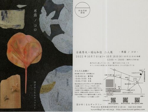 展示タイトルのように、急に気温が下がり秋がぐっと深まりましたね。 毎年この季節に、古森秀夫さんと堀込和佳さんの作品を展示していただいています。 紙・蜜蝋・陶・木・金属を使って、日常の風景などのイメージをドローイングや立体で制作している古森さ…