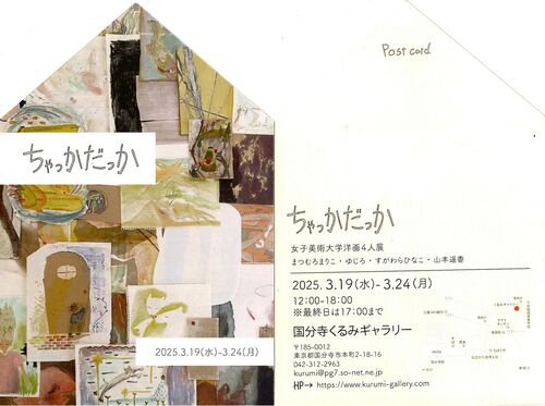 女子美術大学洋画科在学中のまつむろまりこ、ゆじろ、すがわらひなこ、山本遥香による平面作品の展示です。 「ちゃっかだっか」“着靴脱靴”は今回の展示テーマに合わせた造語で、内と外の世界を意味しているそうです。「内と外」・・・広く様々な意味が含まれ…