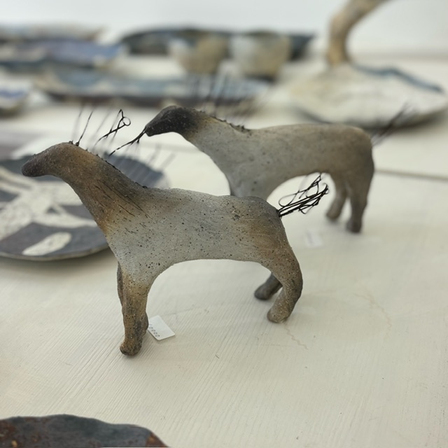 堀込さんは陶の器や象、馬、鹿といった動物、制作の元になる詩も。